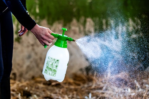 Spruzzare la soluzione risultante sulla lettiera e/o sul fieno. Evitare il contatto con gli occhi.